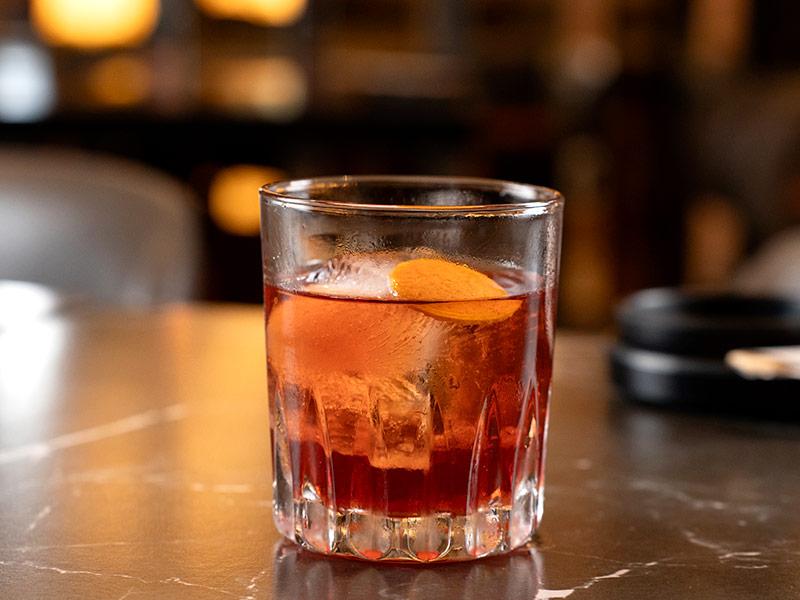 O bar é um dos grandes destaques, com uma iluminação arrojada que atrai olhares. O balcão, revestido com uma pedra de ônix iluminada, brilha discretamente, adicionando um elemento de luxo e exclusividade. Aqui, os drinks não são apenas servidos – são performáticos. Os mixólogos preparam desde clássicos refinados, como Negronis e Fitzgeralds perfeitos, até criações autorais, que surpreendem com ingredientes inusitados e apresentações instagramáveis.